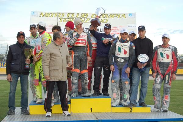 2009. Il MC La Favorita vincitrice del Campionato Italiano a Squadre con Mattia carpanese, Massimo Mora e Krzisztof Jablonski (PL) premiati nell’ultima gara di Terenzano del 18/10/2009