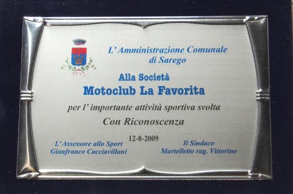 2009 MOTO CLUB LA FAVORITA SAREGO 18/10/2009 a Terenzano (UD), dopo 4 gare 1° Classificato nel Campionato Italiano Speedway a Squadre – Internazionali d’Italia Piloti italiani: Mattia Carpanese, Massimo Mora, Emiliano Sanchez Piloti stranieri): M. Kus (CZ), T. Stange (D), S. Ulameck e K. Jablonski (PL)