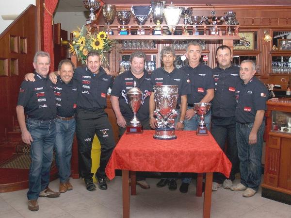 2005. La squadra del MC La Favorita (da sinistra): Alessandro Novello, Veroslav Kollert (Repubblica Ceca), Andrea Maestrelli, Norbert Magosi (Ungheria) e Guglielmo Franchetti con il Capo Squadra Ottaviano Righetto