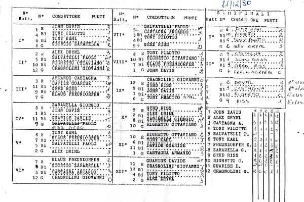 A questa prima manifestazione la squadra del nostro Club era composta da giovani piloti italiani, Guglielmo Franchetti, Andrea Maestrelli, Alessandro Novello e come piloti stranieri ha ingaggiato per tutta la manifestazione il giovane pilota della repubblica Ceca Veroslav Kollert e l’esperto pilota Norbert Magosi dell’Ungheria.